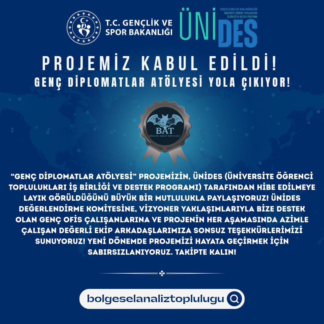 MSKÜ Bölgesel Araştırma Topluluğu (UISAT), "Genç Diplomatlar Atölyesi" isimli projeleriyle 5. dönem başvuru sonuçlarına göre ÜNİDES kapsamında hibe almaya hak kazanmıştır.